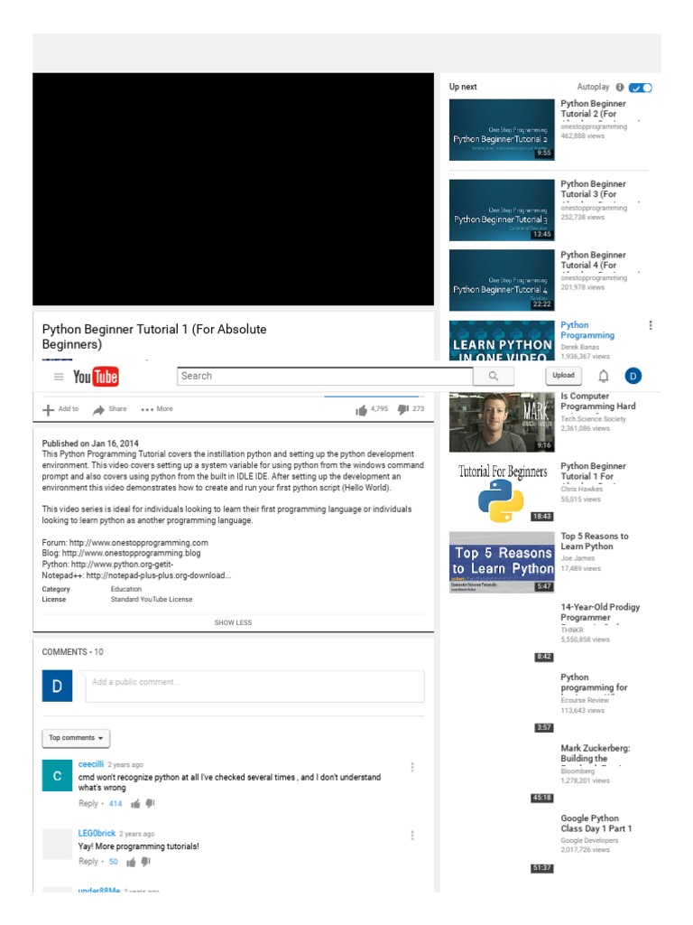 PYTHON TUTORIALS - YouTube from i.ytimg.comHe explains everything you need to know to get i would also advise downloading all of the videos from youtube that you can and adding them in various folders so you can also watch them off.